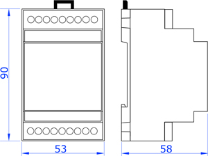 |  | RS232/C 雙向端口可配置用于連接外部設備。 RS485 雙向端口可配置用于網絡連接。 16 位模擬輸出(DGT1AN 型號)4-20mA / 0-5Vdc / 0-10Vdc 可供選擇。適用于輸出電流的最大負載:300Ohm。適用于輸出電壓的最小負載:1kOhm。 2 個 photomosfet 輸出:150 mA 48 Vac / 150 mA 60 Vdc (NO),具有可配置功能(DGT1IO 型號)。 2 個光隔離器光電耦合器輸入:12÷24 Vdc,最小 5 mA - 最大 20 mA,具有可配置功能(DGT1IO 型號)。